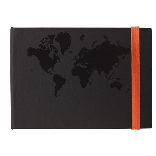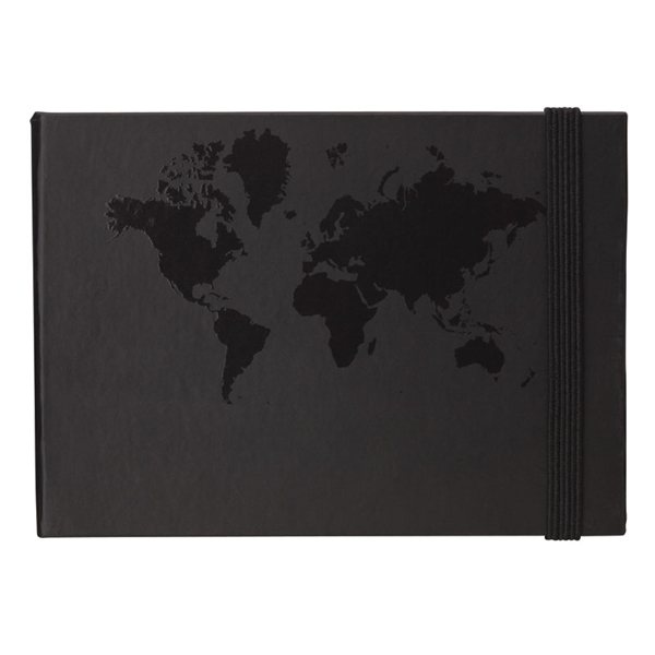 - Hard cover booklet with 5 color flags, 4" x 3" and 2" x 3" sticky notes, elastic closure and world map design on cover.
