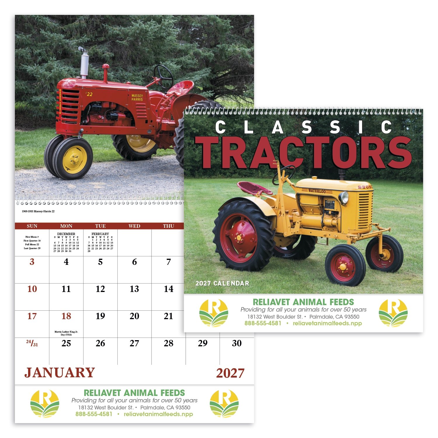 Printed on premium gloss paper and featuring vibrant high-resolution images of restored vintage tractors, this calendar is more than a way to keep track of important dates—it’s a conversation starter, a desk essential, and a daily reminder of your brand. Let’s face it, who wouldn’t want to glance back in time while planning for the future?