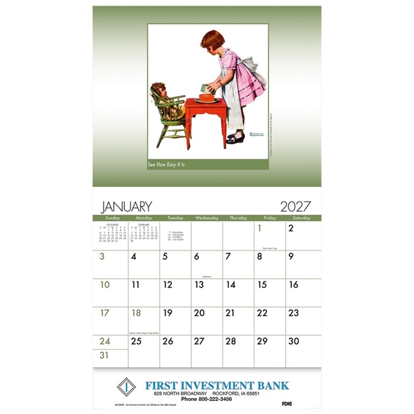 - Features thirteen nostalgic art images by American icon Norman Rockwell
