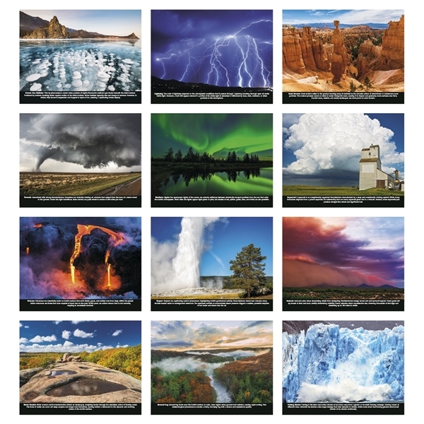 - Hang this 13-month calendar on your wall and learn about some of nature's unusual phenomena. The FSC® label means that the materials used for this product come from well-managed FSC®-certified forests and other controlled sources.