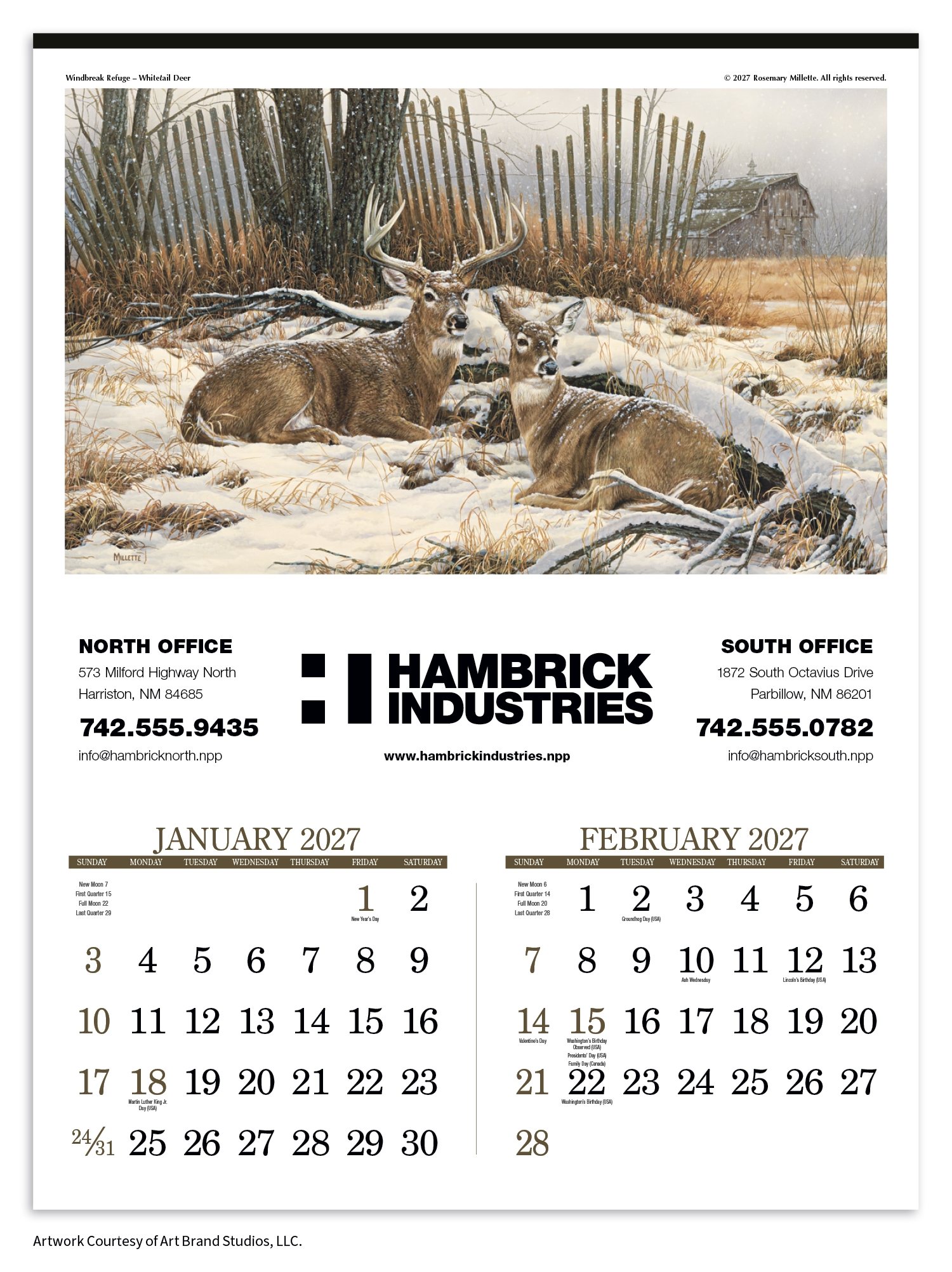 - Go into the wild with this calendar. Top wildlife artists capture animals in their natural settings. This artistic and realistic wildlife calendar is sure to grab attention for any advertisement. The FSC® label means that the materials used for this product come from well-managed FSC®-certified forests and other controlled sources.