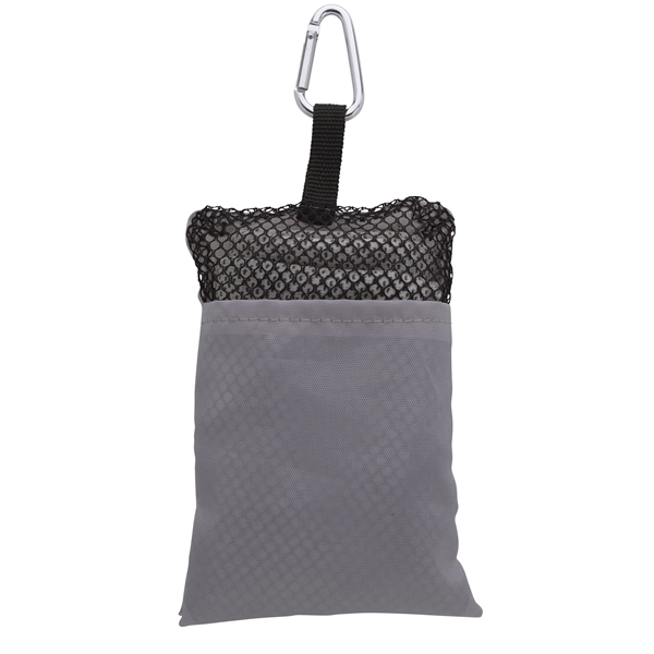 - When things heat up on the course, keep your cool with this towel. It packs away neatly in the included pouch that features a plastic clip so you can hang it from your bag or belt loop.