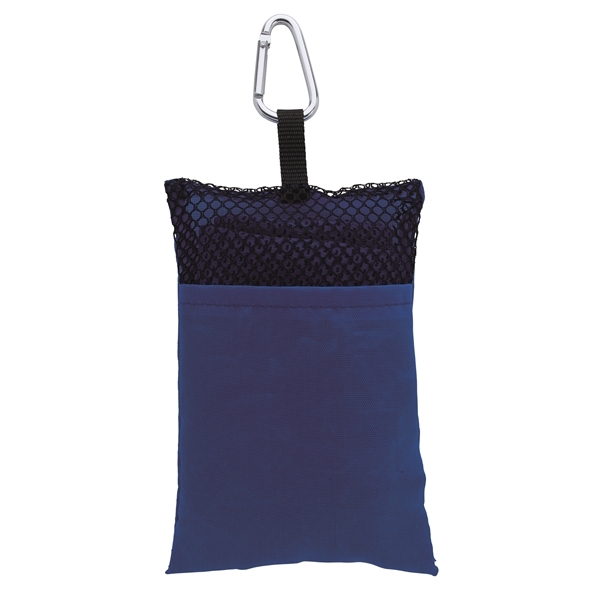 - Mesh pouch has a back pocket, snap closure and cooling towel