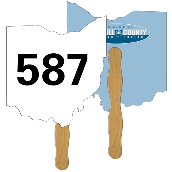 About this Promotional Ohio State Shape Auction Hand Fan Full Color - Paper Products: