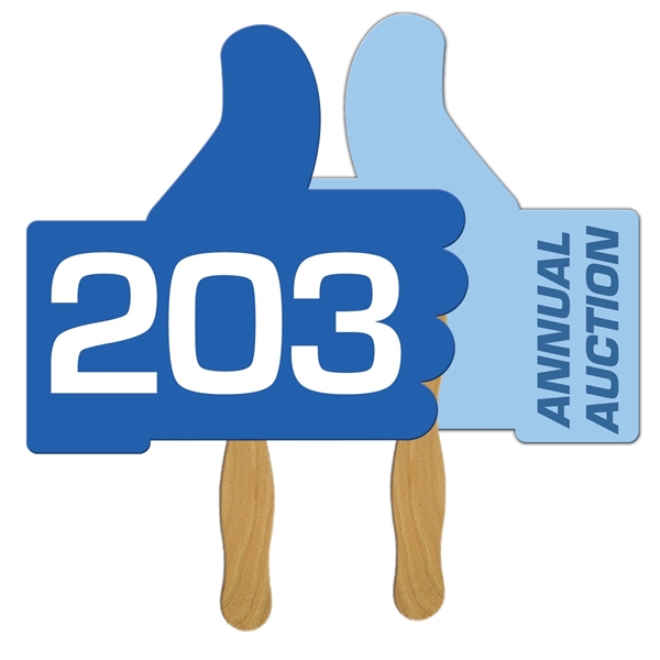 About this Promotional Thumbs Up Sign Auction Hand Fan Full Color - Paper Products: