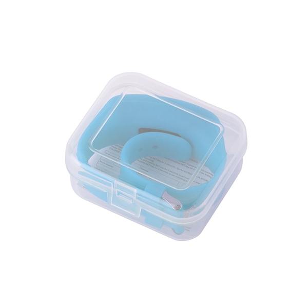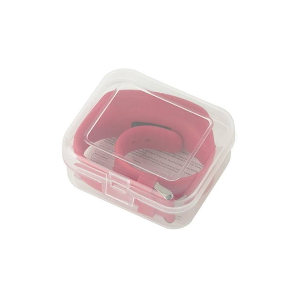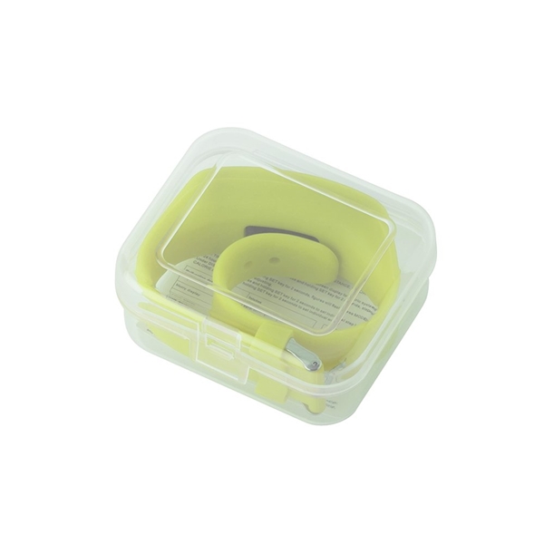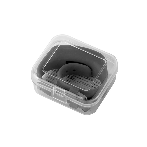 - Pedometer activity watch with silicone band and clear package.