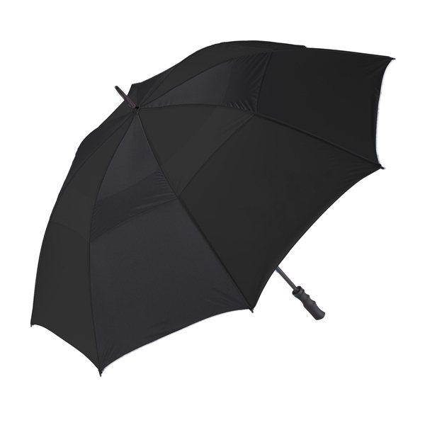 - The Bogey vented sport umbrella features a 60" arc, black steel shaft, double ribbed construction on a wind-reflex frame, manual opening, nylon material, black rubber spray handle and windproof vented technology.