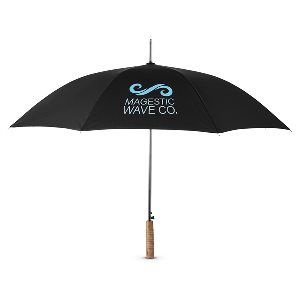 - Stick umbrella with 48" arc and wood handle.
