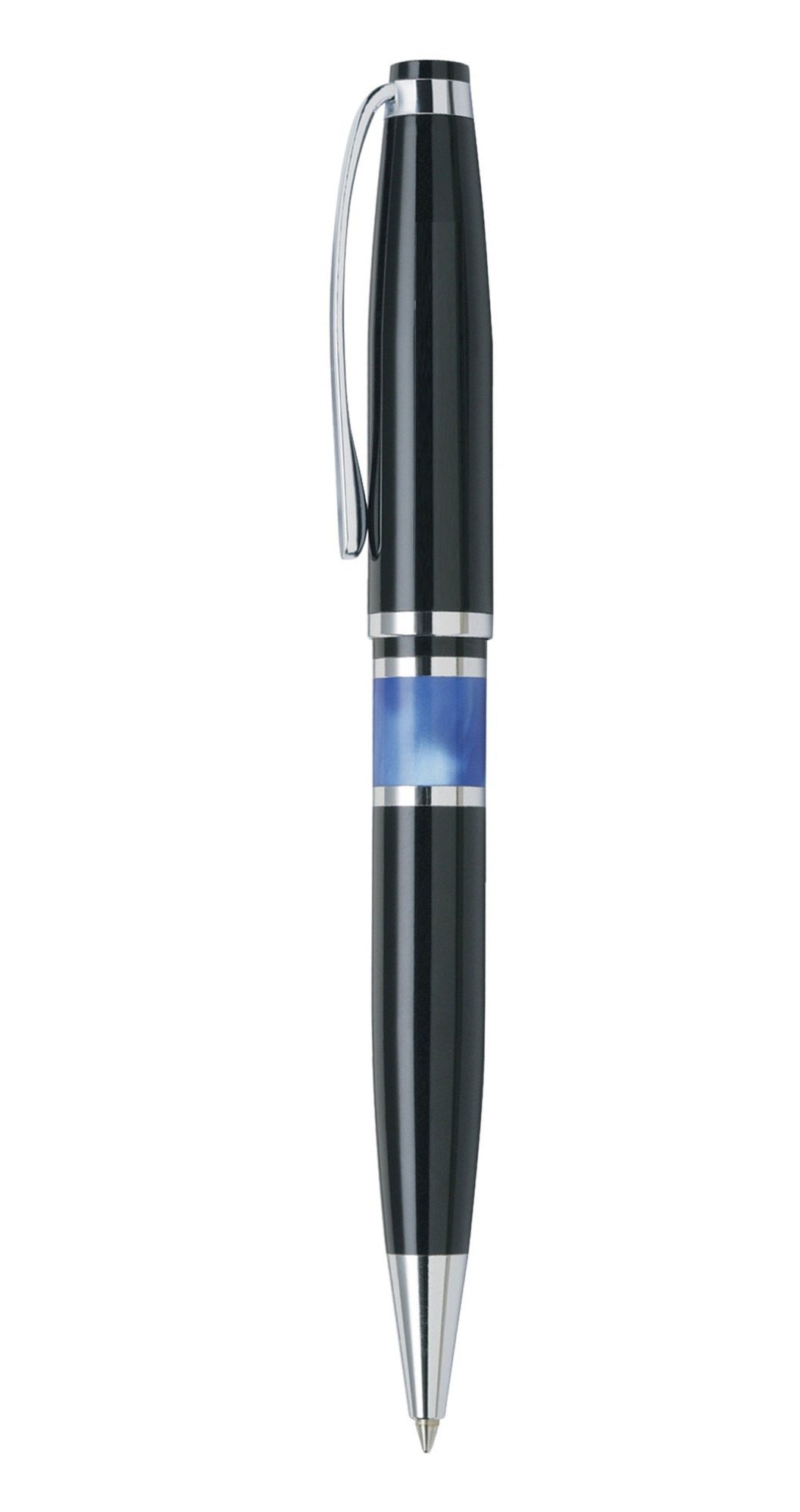 - Black lacquer finish with blue "marbleized" resin grip and polished chrome points.