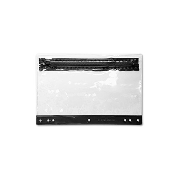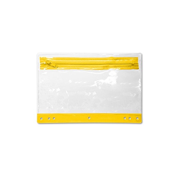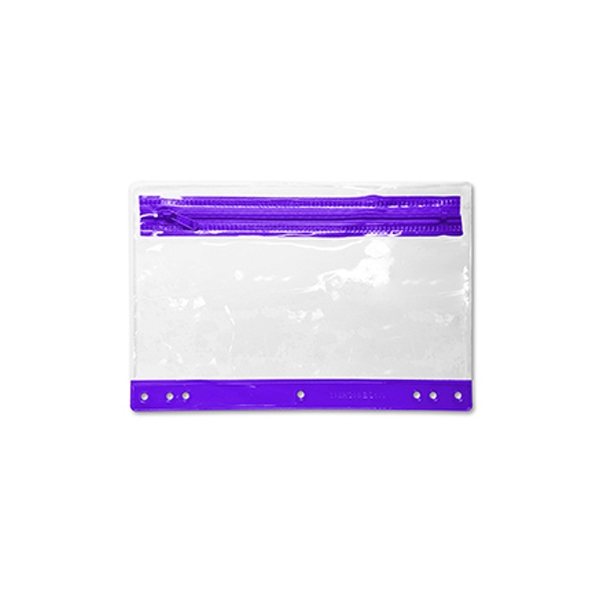 - This clear, zippered pouch with colorful trim provides plenty of room for all of your writing instruments or crafting supplies and is three ring binder friendly so it's also the perfect item for back to school!