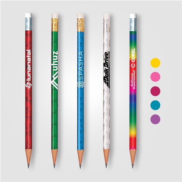 - Holographic Finish: These hologram pencils feature an iridescent wrap that catches the light (and the eyes of everyone in the room). Perfect for grabbing attention and keeping your brand memorable.