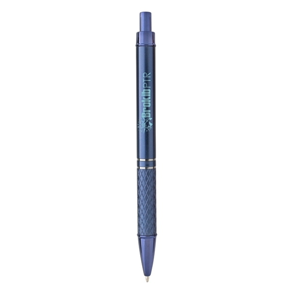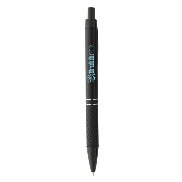 - The UV coating on this plunger-action medium ballpoint pen gives it a shimmery finish, while other features, including a durable metal clip, two chrome middle rings, and a sophisticated diamond-patterned grip, add to the upscale look. Combine that with its recycled content and economical price, and you can feel equally good about giving this writing instrument as a gift or keeping it for yourself. Contains 37% recycled post-consumer recycled ABS.