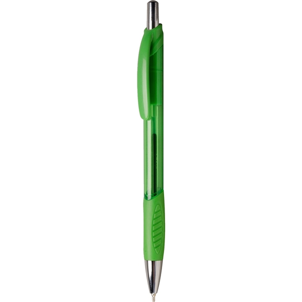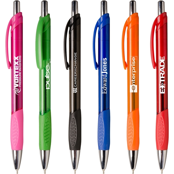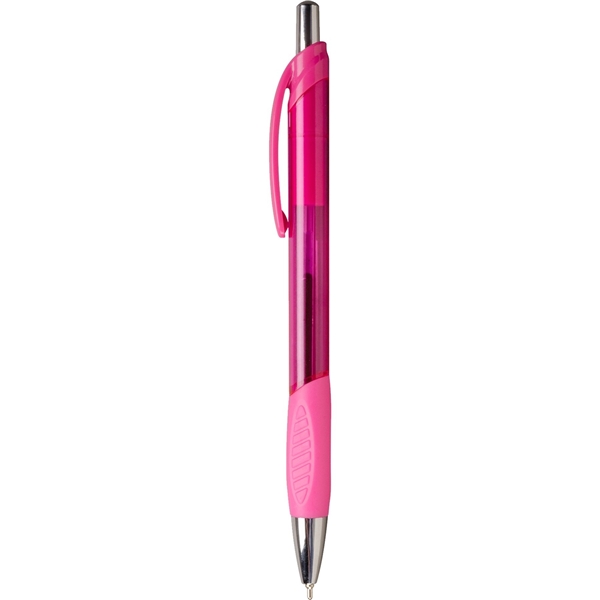 - Translucent barrel with sculpted rubber grip for writing comfort.
