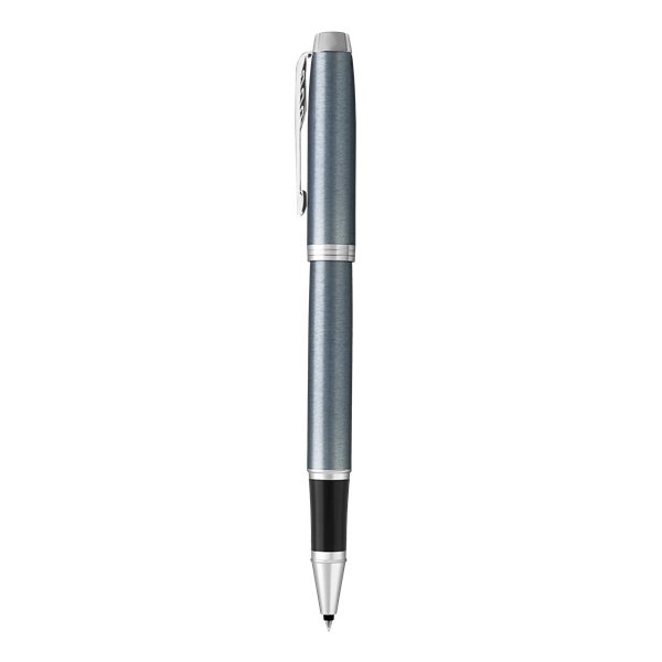 Details on making your custom Parker IM Capped Rollerball Pen, Light Blue Grey w/ Chrome Trim, Fine Point, Black Ink