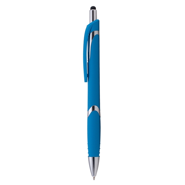 - This click-action plastic pen features a soft-touch rubberized barrel with a matching grip and chrome accents, plus capacitive stylus for use with all your digital touchscreen devices.