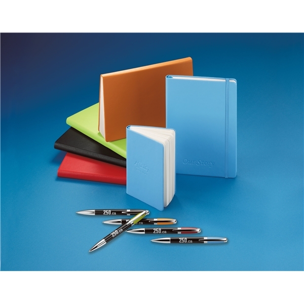 Neoskin Hard Cover Journal Small.The NeoSkin® Hard Cover Junior Journal is a great promotional item to make a fun and enjoyable impression with your customers or audience. These neoskin journals are very versatile and great for taking notes, making them a perfect promotional item for schools to give to families, nonprofits, and professionals who provide guidance and consultative services to people. The journals have a comfortable yet sturdy feel with the neoskin covering and quality journal and notebook construction. You won’t be disappointed in the quality of these journals and the one receiving it will appreciate it. Start growing your brand and increase the awareness your community has for your organization.