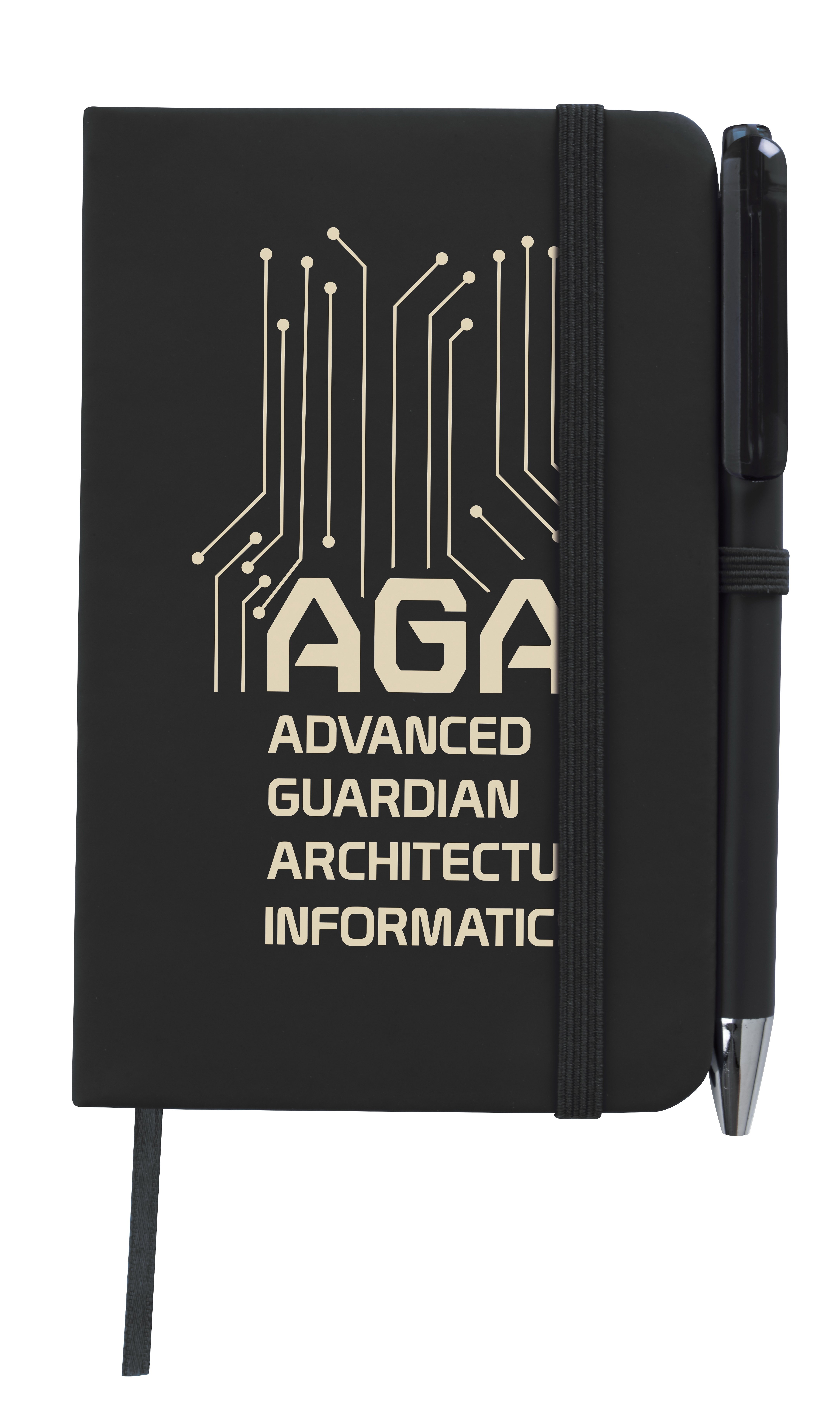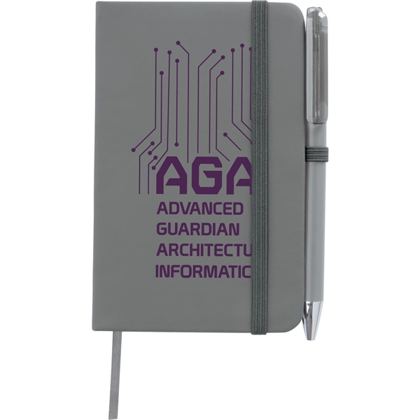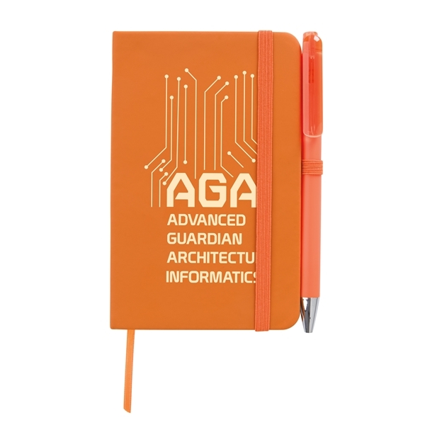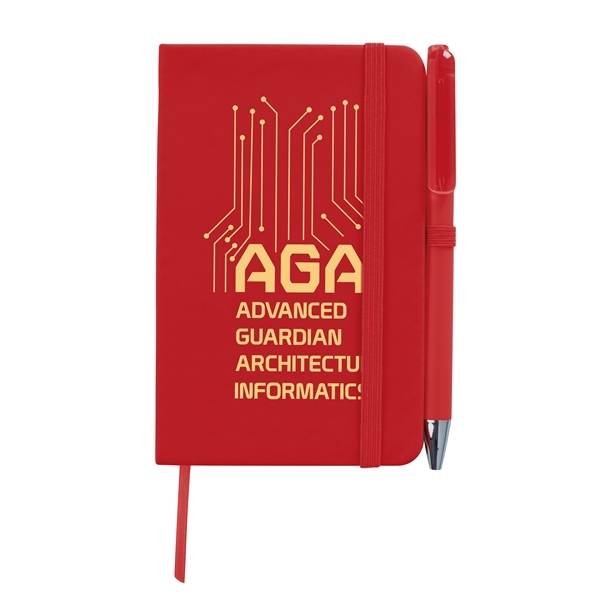 - Take this mini notebook/pen combo with you when space is limited. Its bookmark, elastic band closure, and 50 sheets of lined paper will keep you organized throughout the day.