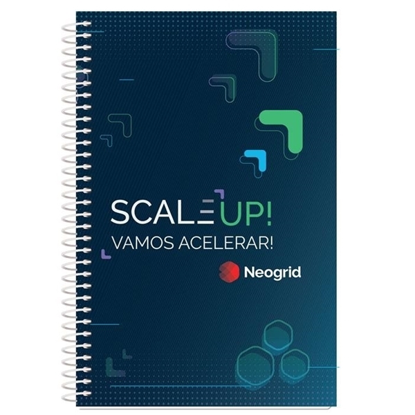 - Plastic coil bound on left side in black.