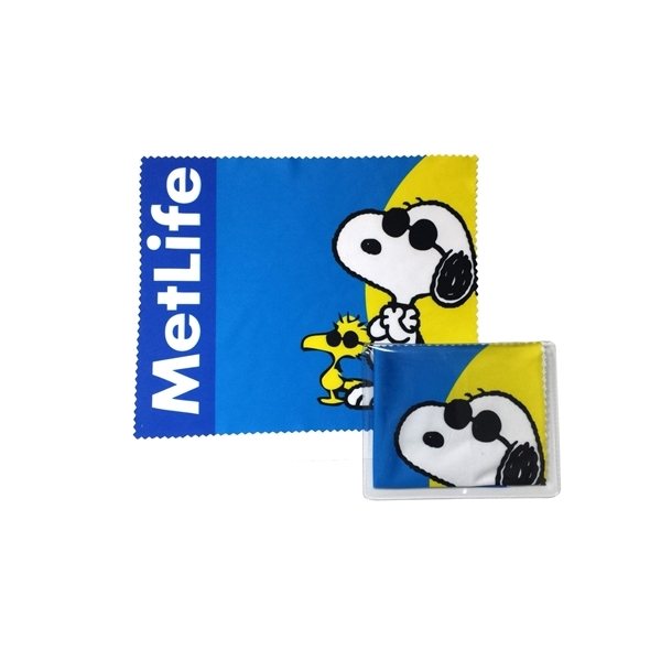 - Full color microfiber cloth for Smartphone, tablets, computers and eyeglasses packed in a clear pouch.