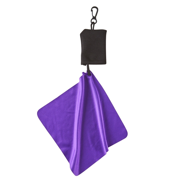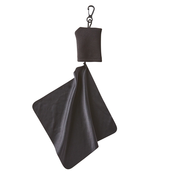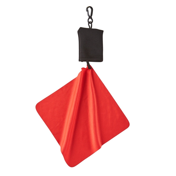 - 5" microfiber cloth stuffed inside neoprene pouch