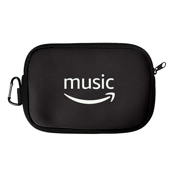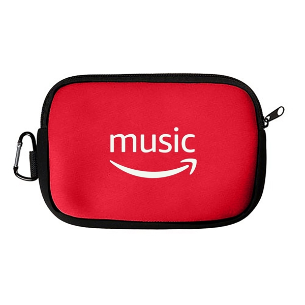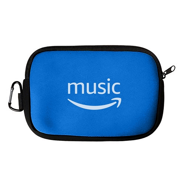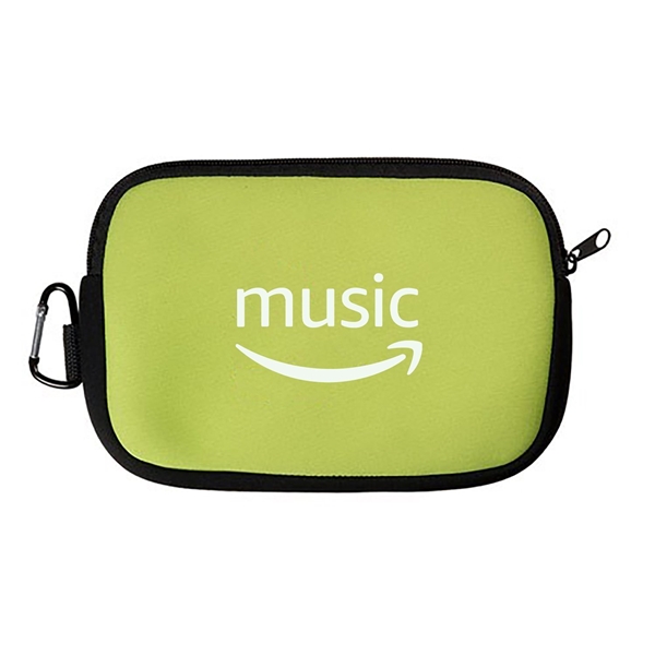 - This pouch features a zipper closure along with a carabiner to clip on to your bag, bike, or purse.