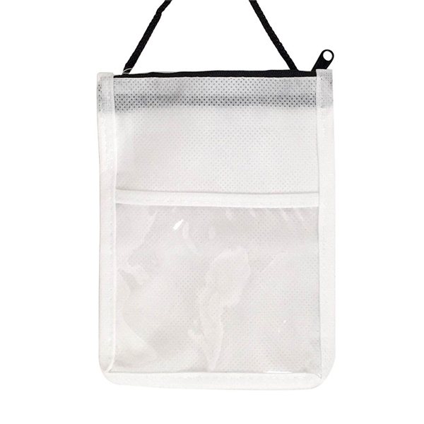 - Badgeholder has one main zippered pocket and opened clear pocket on the front and back.