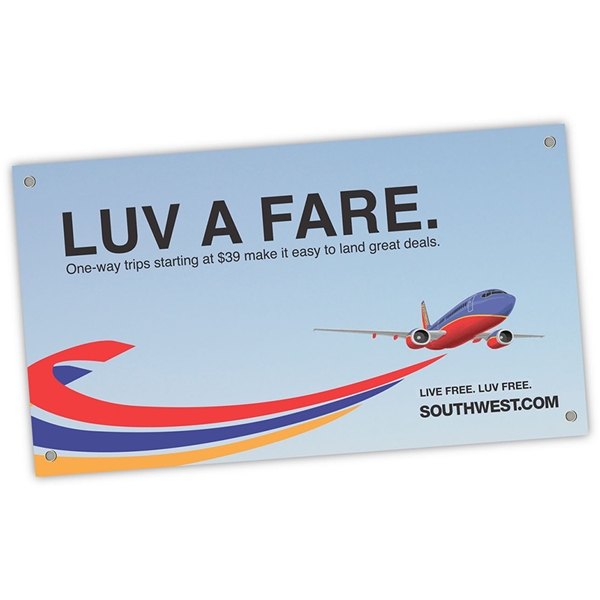 - The banners are sewn with a double needle finish and come with four grommets for ease in hanging.
