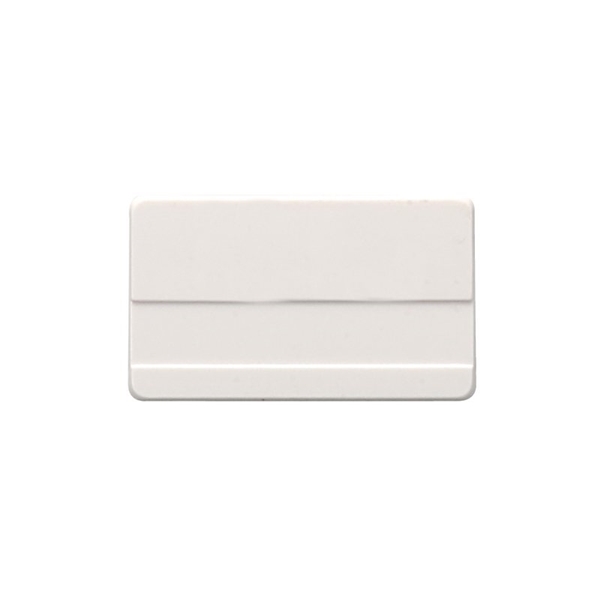 - Plastic vinyl badge accommodates a write-on strip or a recessed slot for a label. Includes jeweler's pin backing.