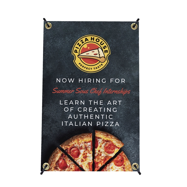 - Banner is single-sided, ensuring your message pops without competing for attention.
