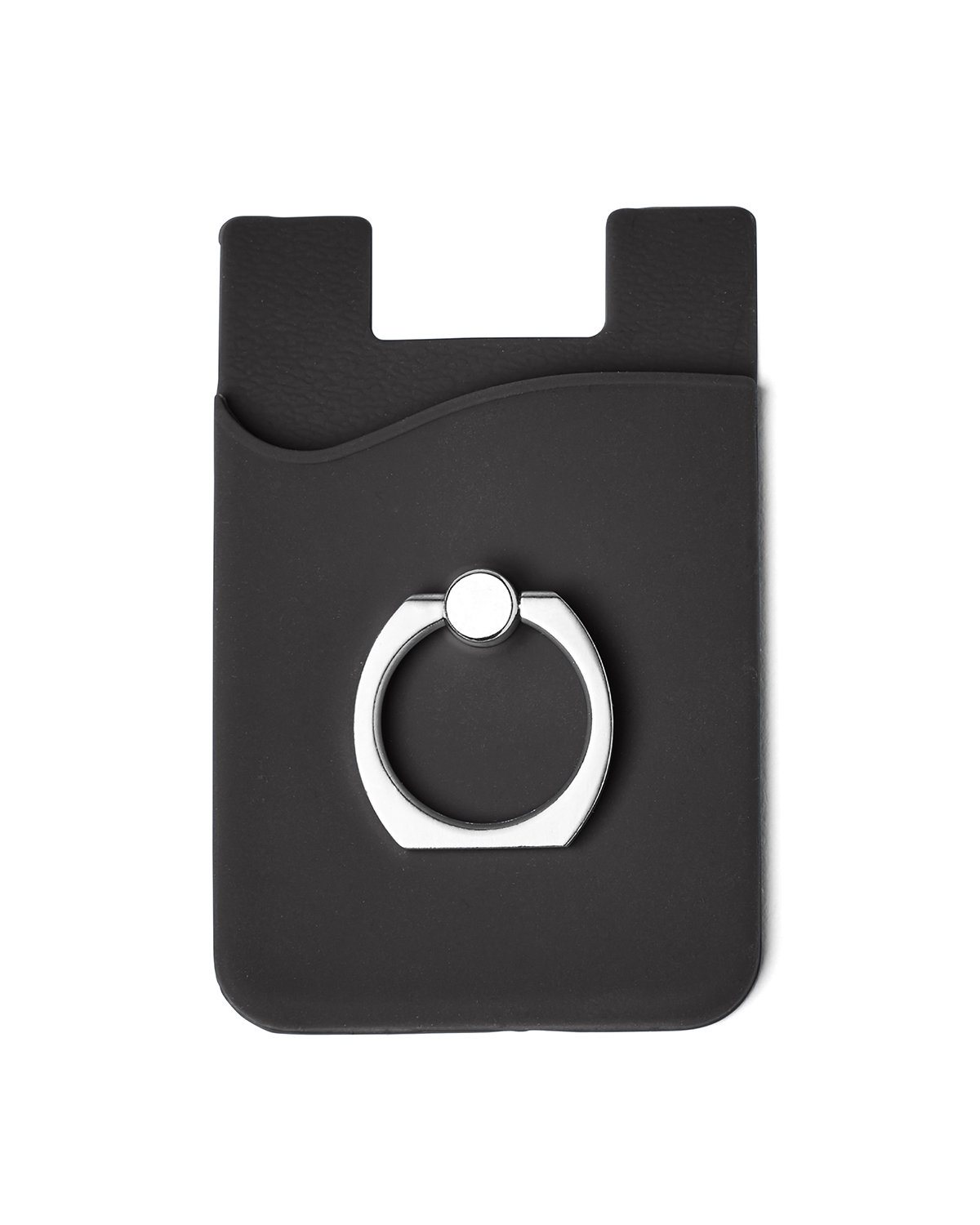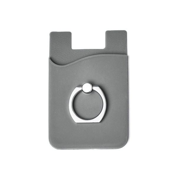 Keep your cards and phone secure with the smartphone holder. Stay organized in a stylish way.- Silicone smartphone pocket with rotating metal ring on back that transforms holder into stand.