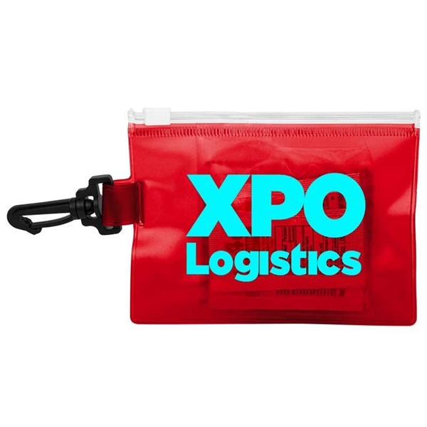 - The Mio 12 pc First Aid Kit includes: 4 adhesive bandages, 1 antiseptic towelette, 1 alcohol cleaning pad, 1 insect sting relief pad, 1 first aid and burn cream, 1 hydro-cortisone, 1 lip balm SPF 15, 2 instant hand sanitizer.